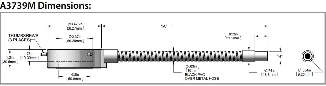 The A37 series fiber optic output is an annular (ring) configuration supplying 360 degrees of brilliant, oblique and even cross-illumination directed toward the optical axis at working distances from 1.5 to 9.0 inches (4-23cm). Fits objective lenses 50mm-60mm diameter.
